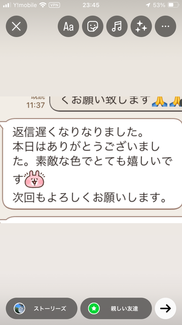 本日はありがとうございました。素敵な色でとても嬉しいです。次回もよろしくお願いします。